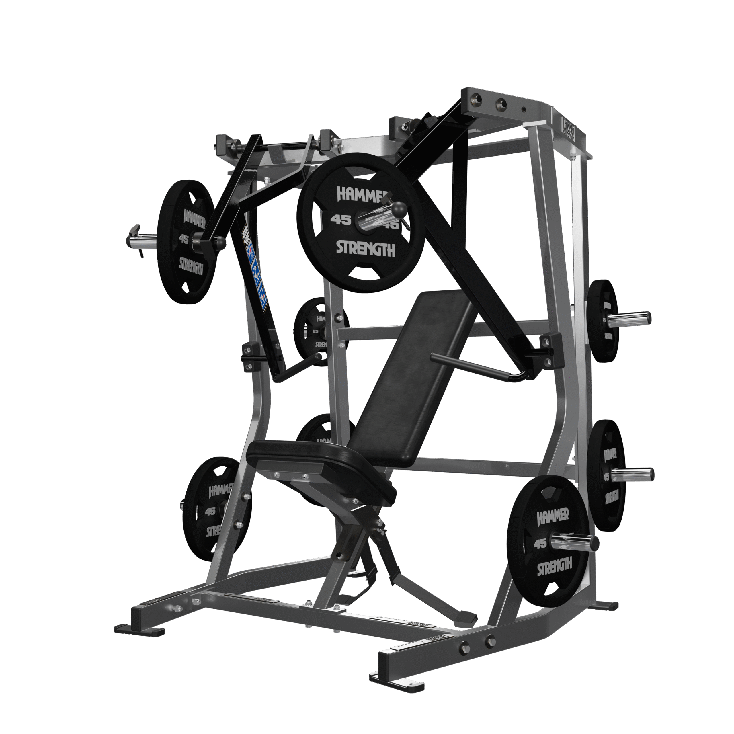 Iso-Lateral Decline Chest Press este conceput pentru a oferi experiența supremă a presării declinate într-o poziție verticală, pe scaun. Cu un unghi inovator de presare și brațe independente, această mașină asigură o mișcare echilibrată și fluidă, vizând partea inferioară a pieptului pentru o dezvoltare optimă. Pentru un plus de confort, Decline Chest Press de la Hammer Strength include un sistem de depozitare integrat pentru greutăți și un centură de siguranță pentru o stabilitate sporită în timpul celor mai grele ridicări.